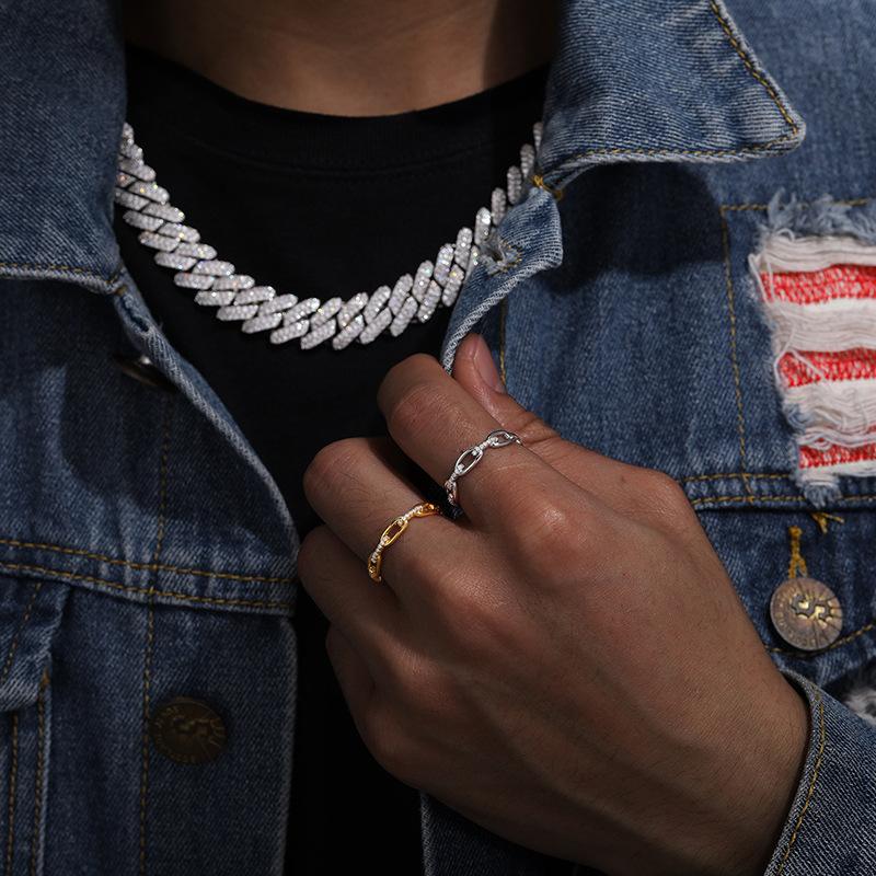 Moissanite 0.1ct Hip Hop Unisex Chained Ring Copper Ring