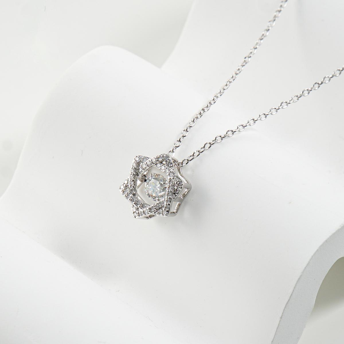 This necklace features a refined star-inspired silhouette, with layered geometric lines delicately framing a brilliant round-cut center stone. The surrounding micro-set moissanites form a luminous halo, enhancing the depth and sparkle of the design while creating a captivating sense of dimension.